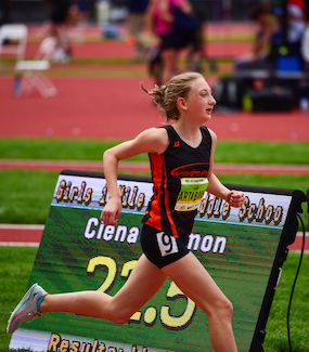 Abby kicked off her competitive season by equaling her personal best in the 800m at the Battle Road Twilight Meet #1, finishing in 2:25! Abby continued to have success in the middle distance events as she ran a 4 second personal best over 1500m, crossing the line in 4:49. This personal record was a reflection of years of hard work, as her previous personal best was from 7th grade!