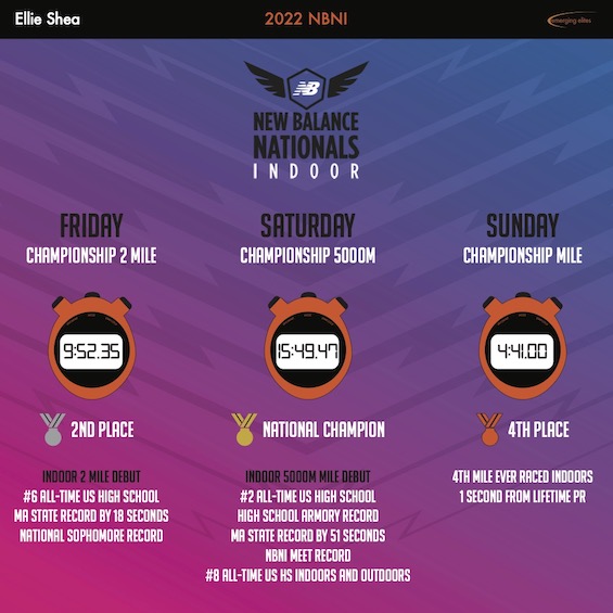 | Ellie Shea: US U20 XC Runner-up, Champs XC Runner-up, Champs Northeast Regional Champion |