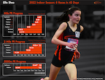 After three NBNI races at the Armory, with 49+ laps of racing covered in 30:22.82 (average pace of 4:57 for 6.1 miles), Ellie walked out with a solid ending to her first indoor track season (Ellie’s 2021 indoor season was held outdoors) and looked forward to a well-earned break before the outdoor season.
