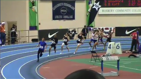 Jenny Donnelly and Lee Milne both competed in the 1500-meter race at the New Balance Boston Twilight Meet held at Bentley College on Saturday. Jenny ran a smart race, landing a huge PR of 4:46.84 and qualifying for nationals! Congratulations, Jenny! Lee ran one of the best races of her career for a huge PR of 4:52.27. John Jantz brought his game face into the 3000m race, finishing in 9:02.44.